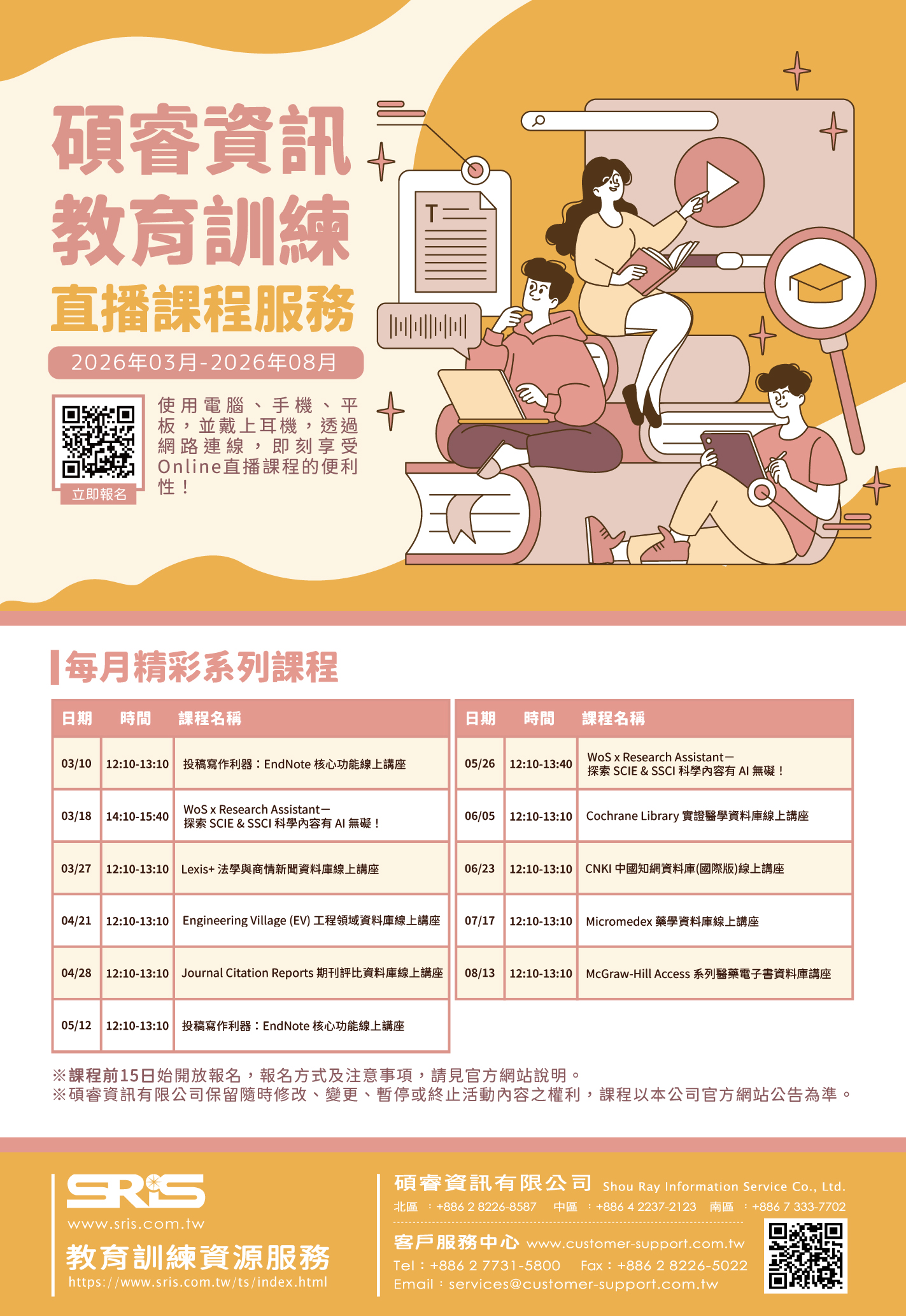 科睿唯安與碩睿資訊規劃一系列線上課程,提供包含Web of Science(WOS)、Journal Citation Reports(JCR)在內之豐富課程內容,詳細課程資訊如下,歡迎有需要者報名參加! 研習名稱:WoS x Research Assistant-探索 SCIE & SSCI 科學內容有 AI 無礙! 研習名稱:Journal Citation Reports 期刊評比資料庫線上講座 |