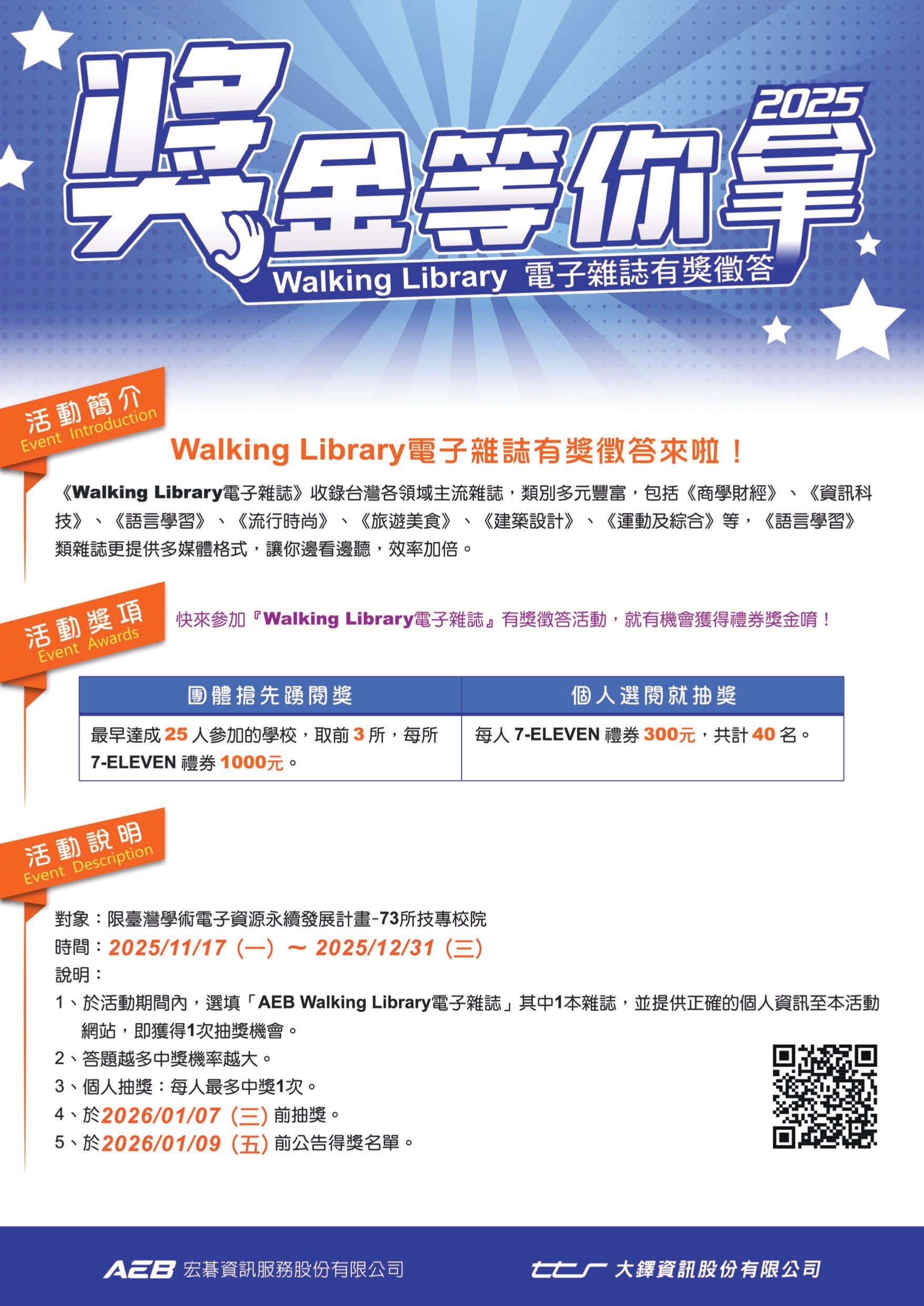 有獎徵答 Walking Library電子雜誌_2025(下)獎金等你拿! |